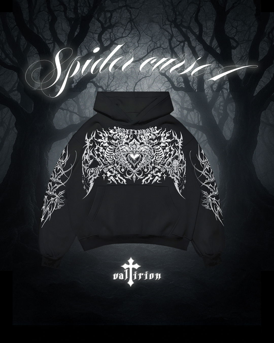 El primer Hoddie Boxy Fit de Valtirion, después de tantos drops, ha llegado. Una de nuestras piezas con más tiempo y trabajo que le hemos dedicado, junto al beanie y scarf complementarios de este drop 06 "SPIDER´S CURSE".